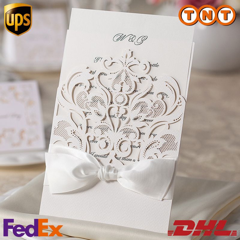 Wedding Invitations White Bowknot Hollow Blank Inner ...