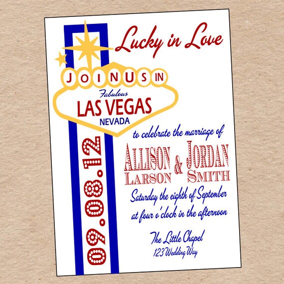 Custom Las Vegas Themed Wedding Invitation by ... (Isaiah Parsons) Sending out wedding invitations that match the feel of the event lets guests know that they can come prepared for a fun, relaxing and informal event. Find Marriage License in Las Vegas and Licenses in Cities and Counties across the U. A traditional wedding invitation suite includes the main invitation, a response card, and any other enclosure card containing helpful information for your guests Bachelorette Party Invitations.